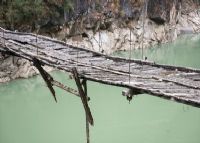 朝紅橋是一座老吊橋,位于茶馬古道的路上,在秋那桶峽谷之上,修建的年代比較早。影視劇《德拉姆》曾在此取景,也因此,這座橋一直沒有遭受被拆除的厄運。