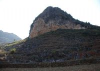 普格巖畫位于丘北縣雙龍營鎮(zhèn)普格村民委普格村西向3公里處的白石崖壁上。崖壁高約30米,朝西向。巖畫距地面7米。巖畫用紅色顏料繪制,畫面范圍50平方米??勺儓D像24個(gè),模糊難辨的10個(gè)。最大圖像高2.2米、寬1米,最小圖像20厘米,為生殖崇拜圖。1997文山州旅游網(wǎng)站公布為文物保護(hù)單位。