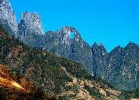 去石月亮,從福貢乘車,沿公路往北行駛多公里,再三區的利沙底下車后,沿高黎貢山一側的小路向上爬,大約走整整一天的路程后,下榻在石月亮下的小村寨米哦羅。于村中擇一塊平地,即可搭起帳篷,生火做飯。米哦羅是一個怒族村寨,極古老,縣里的文物隊在這里常常能征集到新石器時代的石斧等物。