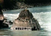 相傳怒江在拜謝了卡娃卡布雪山山神和唐古拉山雙親后,一邊玩耍一邊走,到了茨開鎮齊郎當后她向江邊的一棵松樹告知了要到遙遠的地方找大海的事,希望它能一定轉告給自己的父母,之所以到現在在這里還有一棵松樹站在江中,一直面向青藏高原山神唐古拉山傳話,形成了奇特的江中松景觀。