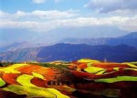 東川的紅土地?fù)?jù)說(shuō)是世界上僅次于巴西里約熱內(nèi)盧紅土地而更具觀賞性的人文自然景觀。據(jù)資料介紹,紅土地的成因是由于云南省大部分地區(qū)屬亞熱帶和熱帶氣候,加之海洋沉積的“喀斯特”地貌,因而使土壤呈現(xiàn)殷紅和赭紅色。千百年來(lái),這里的人民在紅土地上開(kāi)墾耕作,每家每戶在自家地里隨意地種植著小麥、馬鈴薯、油菜等不同品種的農(nóng)作物。久而久之,這種隨意的耕作卻造就了今天色彩斑斕的東川紅土地。在每年不同的季節(jié)里,影友們都能在這里收獲到不同的美景。