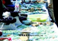 姐告玉城位于姐告邊境貿易區內,占地10余畝,有店鋪60多家,以玉石毛料批發和樹化玉銷售為主。每天上午8點至10點是玉城最繁忙的時候,人們集中在這里買賣玉石毛料,珠寶雕刻師們往往在這個時候到這里“淘”毛料,然后拿回去轉手或雕刻。如果你不是專業人士,在這里你無法把一塊塊璞玉與一件件玉石精品聯系起來,只有精明的設計師才能把一塊看似平常的毛料雕琢成上等的作品,正所謂玉不琢不成器。曾經就有一位雕刻師在這里花幾十元錢買了一塊料,然后雕刻成搏斗中的獅子,最終拍賣得十六萬美元。所以決定玉石作品價格的因素可能不是成色,也許是雕刻工藝。