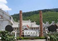 在合田民俗村的村口,有兩棵高7米的圖騰柱,每棵圖騰柱下有一直徑為2.8米的大銅鼓,游人來到這里,一眼就能看出這是少數民族的東西。圖騰柱是哈尼族和彝族的神柱,柱上的紋飾圖案,一般記述的都是他們的信仰和生活。
